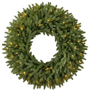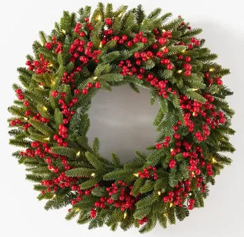 High Quality Handmade Artificial Christmas Wreath Garland with Red Berries and Lights Eco-Friendly Green PE PVC Material